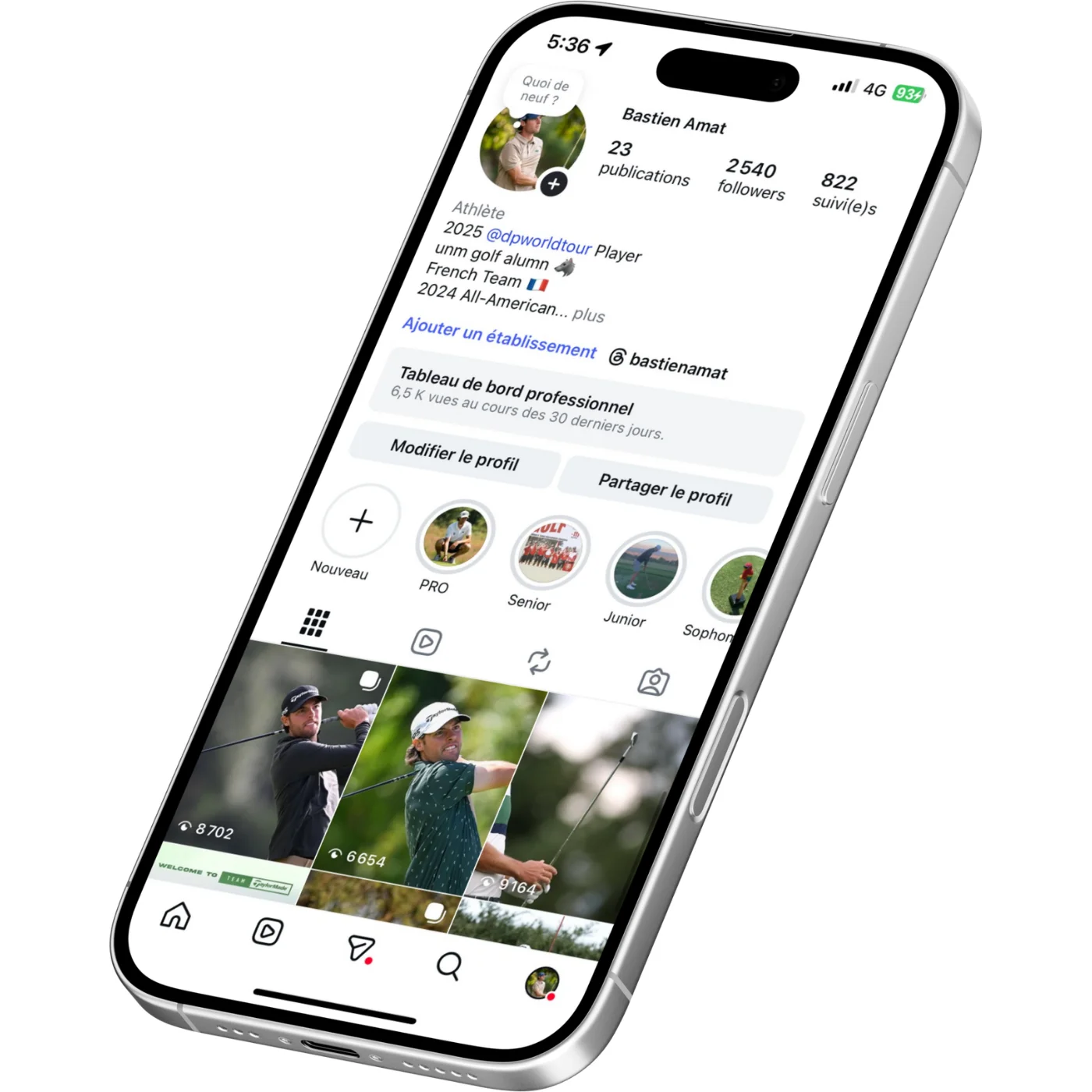 Retrouvez toute son actualité sur son compte Instagram ! Calendrier, entraînements, tournois ou résultats : tout y est !
